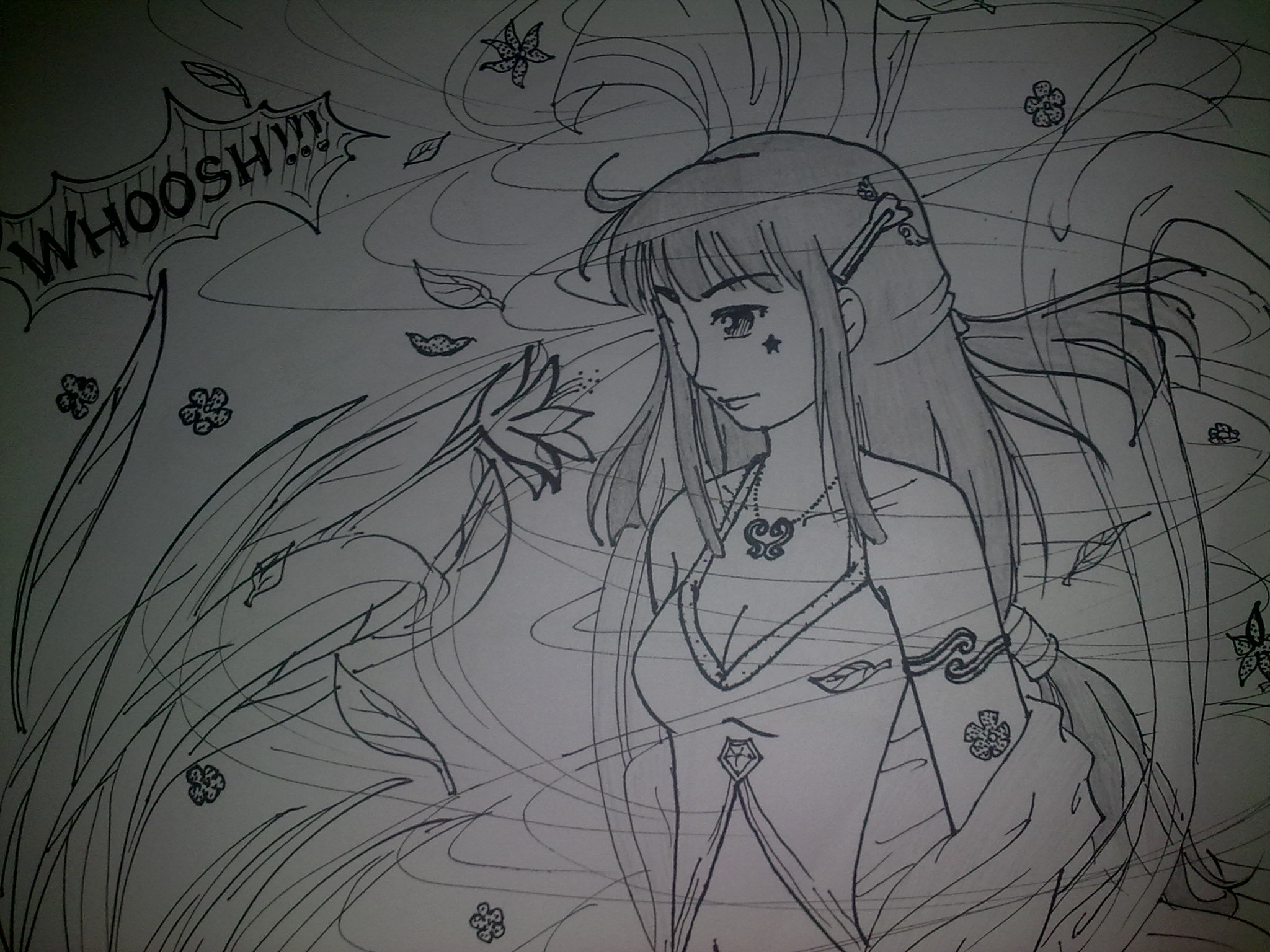 “Rune Sage” (January 13, 2011): This was the first time that I used a calligraphy pen, so I was obviously struggling.. Drawing this one took me about an hour. I started with drawing the girl, but I didn’t know what to do with her. I thought of making a rune sage, with some sort of wind effects (to cover up some mistakes. heehee). I drew the leaves and flowers last.